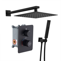 Matte Đen Brass tĩnh nhiệt phòng tắm vòi sen Set với nhiệt độ hiển thị và lượng mưa vòi phun